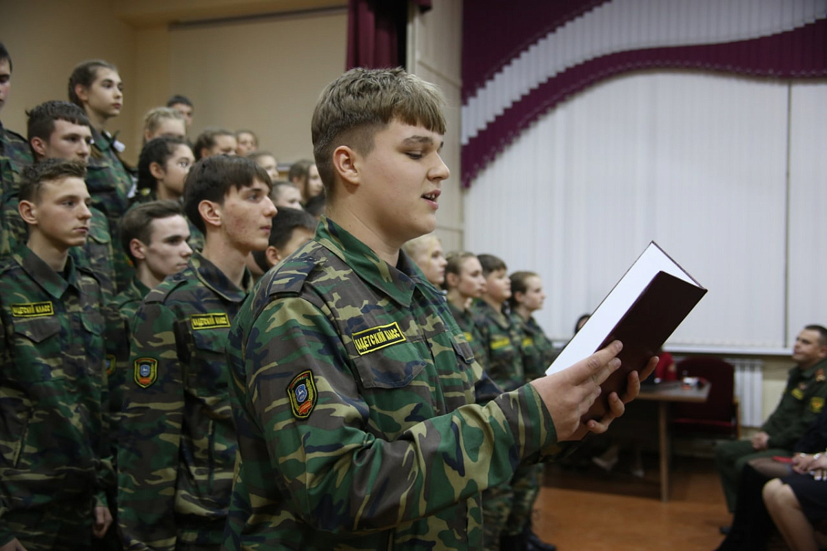 В ходе мероприятия 46 девчонок и мальчишек приняли клятву кадета. От лица родителей виновников торжества с посвящением в кадеты поздравил офицер управления Западного оперативного командования подполковник Сергей Хомутов.