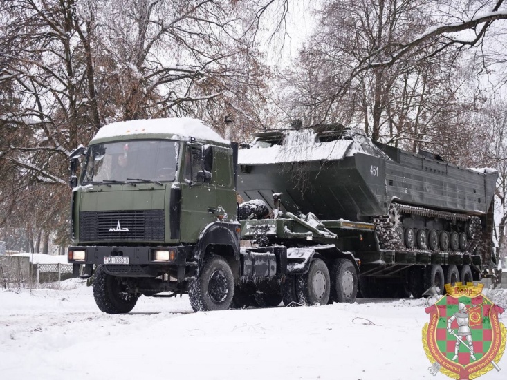 — Сегодня от командующего войсками СЗОК поступило распоряжение на подготовку мостовой переправы через реку Березина в указанном районе для осуществления пропуска механизированных подразделений Северо-Западного оперативного командования. Для этого у нас задействованы инженерный дорожно-строительный батальон, а именно понтонная рота данного батальона, также подразделения обеспечения. Непосредственно для обеспечения действий этой понтонной роты. Также из инженерно-технического батальона у нас задействован расчет путепрокладчика ПКТ, который будет осуществлять подготовку маршрутов подхода к водной преграде и подготовку берега. Будет действовать расчет плавающего транспортера, который будет готовить майну на реке Березина, для того, чтобы осуществить выгрузку звеньев. Для наведения мостовой переправы на реке Березина у нас будет задействовано семь речных и два береговых звена. Это по данным инженерной разведки, которая была проведена сегодня с утра. Трудностей наведение переправы зимой не вызывает, но есть определенные особенности: берега покрыты льдом, необходимо их расчетом ПТС готовить, убирать этот лед, чтобы звенья сразу ложились на воду и было удобно их состыковывать. Также непростые погодные условия требуют от личного состава повышенного внимания и концентрации на задаче.