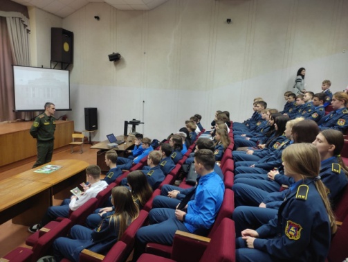 Заместитель командира инженерно-технического батальона 557-й инженерной бригады Западного оперативного командования по идеологической работе майор Сергей Бертош рассказал школьникам о воинской части, ее истории и боевом пути в годы Великой Отечественной войны, об инженерных войсках. Сергей Николаевич проинформировал учащихся 10-х и 11-х классов военно-патриотического профиля о том, как поступить на военную службу по контракту в 557-ю инженерную бригаду. Он также рассказал о военных учебных заведениях Республики Беларусь, пояснил, как стать офицером Вооруженных Сил. Рассказ сопровождался интересными видео- и фотоматериалами.