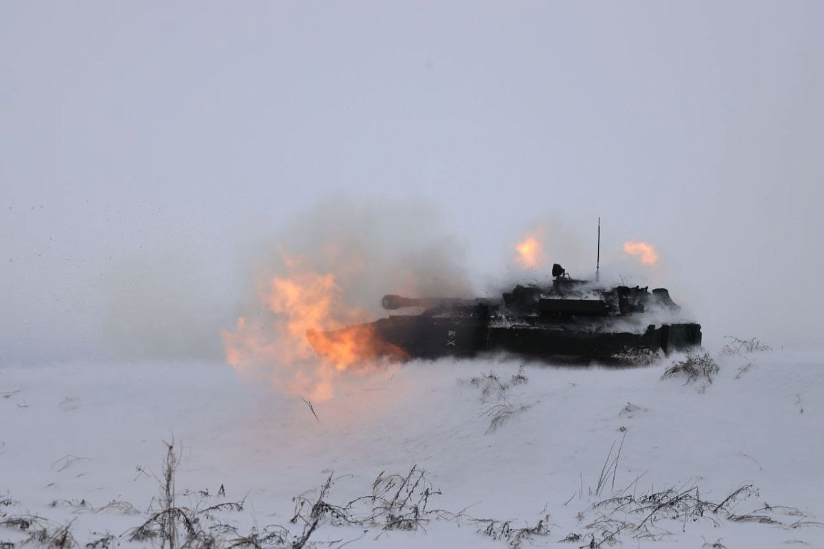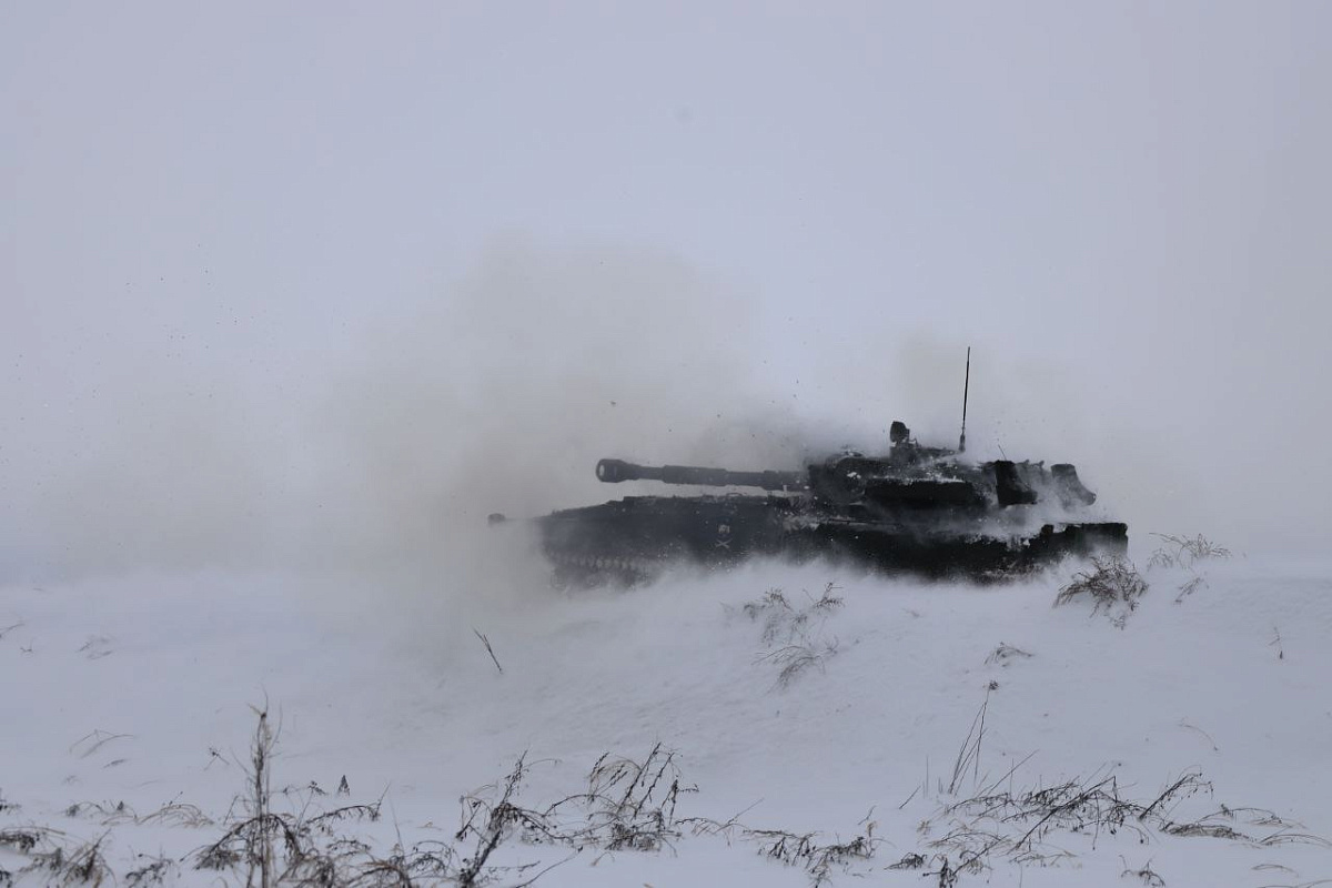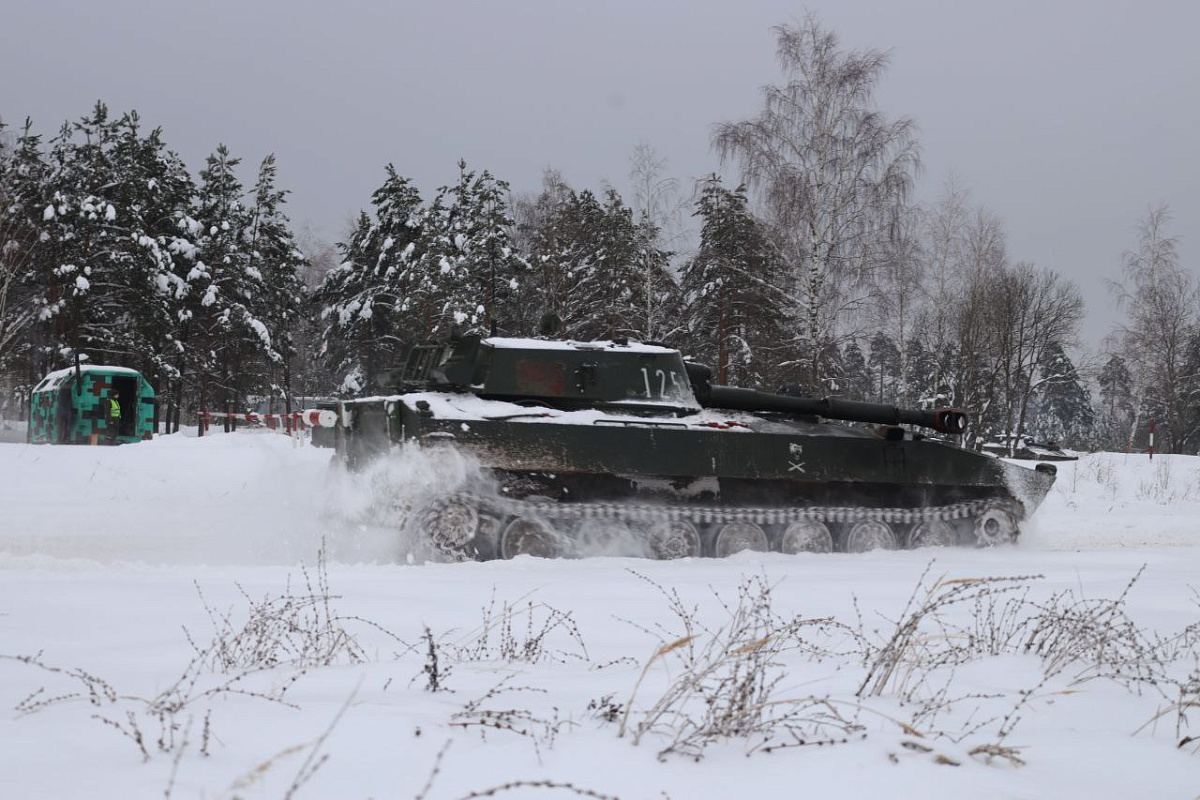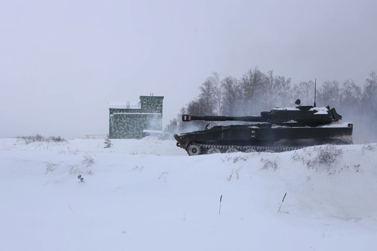 В рамках внезапной проверки боевой готовности Вооруженных Сил военнослужащие 19-й отдельной гвардейской механизированной бригады осуществляют стрельбу прямой наводкой по неподвижным целям.