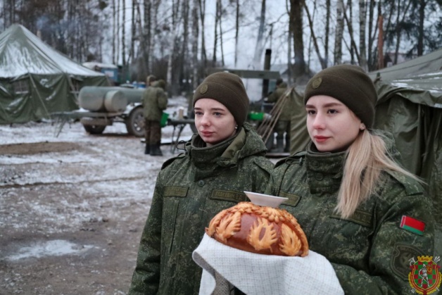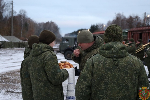 Белорусские военнослужащие с хлебом-солью встретили коллег из Российской Федерации.