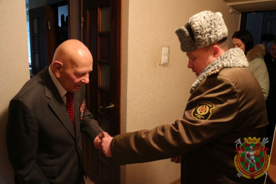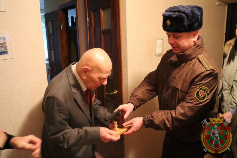 Поздравить ветерана с праздником приехали начальник 1405-й артиллерийской базы боеприпасов, военный комиссар Партизанского района, представители управления ракетно-артиллерийского вооружения Министерства обороны, организации ветеранов при службе РАВ Вооруженных Сил Республики Беларусь.