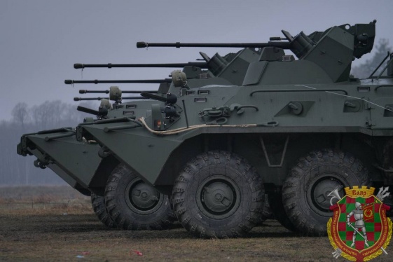 На полигоне Брестский военнослужащие десантно-штурмового батальона проводят проверку боя и вооружения БТР-82А.