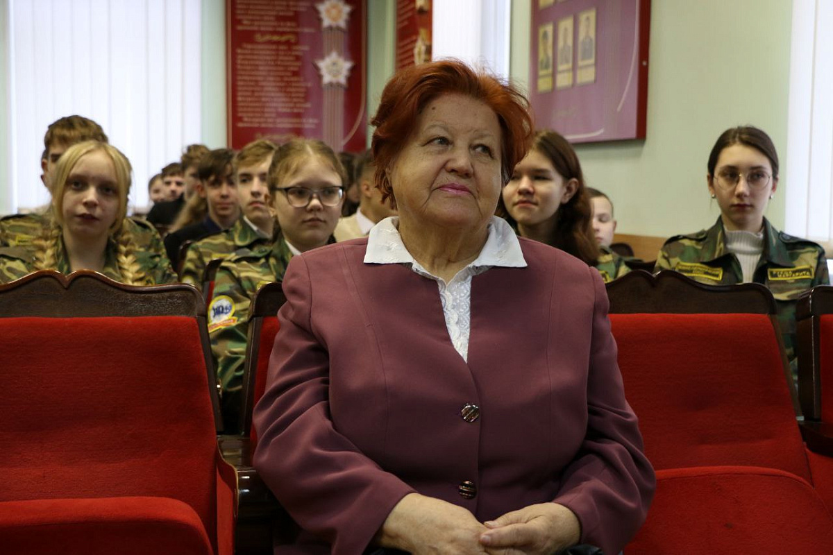 На «Урок мужества» была приглашена ветеран Великой Отечественной войны, житель блокадного Ленинграда Ольга Коняева. Ольга Ивановна, как очевидец тех далеких и трагических событий, поделилась с учащимися воспоминаниями о долгих днях блокады, о том, как в неимоверно тяжелых условиях ковалась Победа.