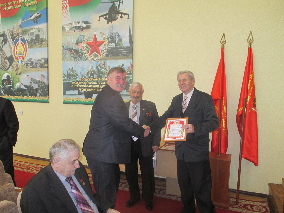 Перед участниками заседания выступил военный комиссар Минской области полковник Игорь Тарабеш и наградил наиболее активных председателей районных организаций, которые проводят совместную работу с военными комиссариатами по военно-патриотическому воспитанию.