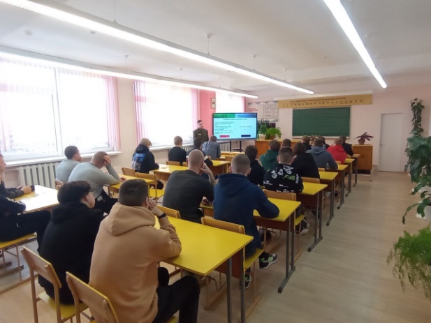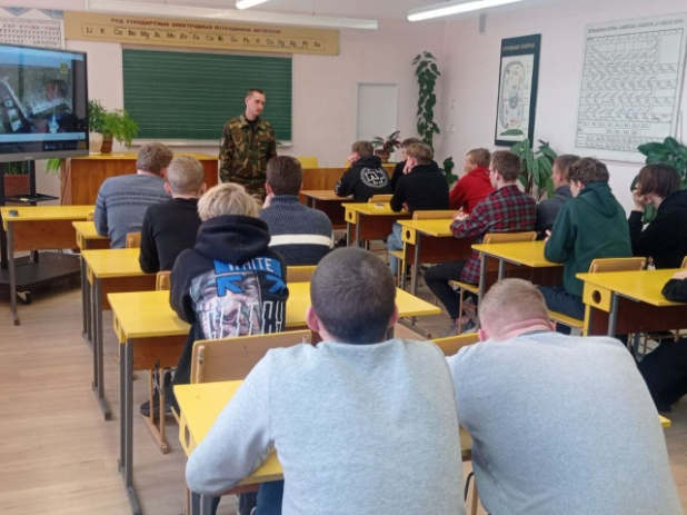 Ребятам рассказали о порядке поступления в Военную академию Республики Беларусь и на военные факультеты в гражданских вузах, о престиже и преимуществах профессии военнослужащего. Также была разъяснена информация о прохождении военной службы по контракту.