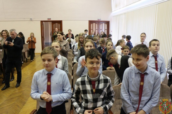 Заслуженный коллектив Республики Беларусь «Академический ансамбль песни и танца Вооруженных Сил Республики Беларусь» продолжает осуществлять военно-патриотический проект «Отечеству служим!». В рамках этого арт-проекта, посвященного 105-летию Вооруженных Сил Республики Беларусь концертная группа ансамбля посетила столичную среднюю школу № 34. В программе концерта были представлены песни военных лет, которые и сегодня не могут никого оставить равнодушными.