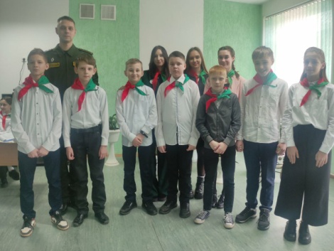 Военнослужащие 74-го отдельного полка связи в преддверии 105-летия Вооруженных Сил Республики Беларусь провели уроки мужества и профессиональную ориентацию учащихся средних школ Поречья, г. Скиделя Гродненского района, а так же приняли участие в торжественном приеме в пионеры учащихся средних школ.