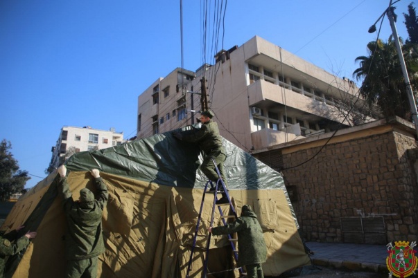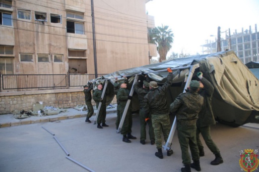 Медицинский отряд специального назначения 432-го Главного военного клинического медицинского центра Вооруженных Сил Республики Беларусь разворачивает полевой госпиталь на территории Сирийской Арабской Республики.