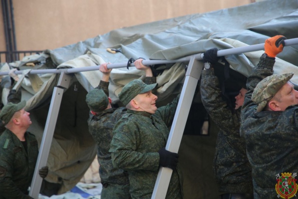 Белорусские военные медики оборудуют в полевом госпитале приемное отделение, отделение реанимации, отделение диагностики, дневной стационар и перевязочную.