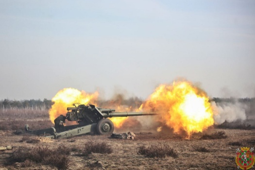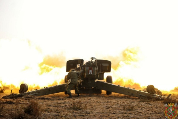 Артиллерийские подразделения выполнили задачи по поражению объектов условного противника из 152-мм буксируемых гаубиц 2А65 «Мста-Б» и 152-мм самоходных артиллерийских установок 2С5 «Гиацинт».