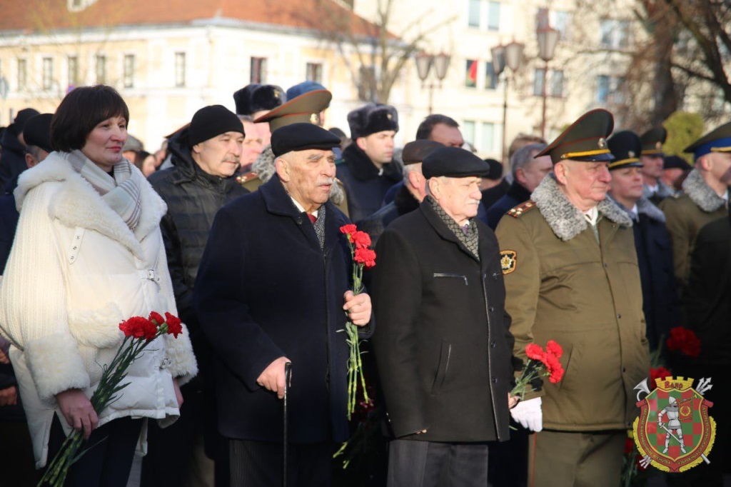 У мемориала собрались председатель Гродненского областного исполнительного комитета Владимир Караник, помощник Президента Республики Беларусь – инспектор по Гродненской области Юрий Караев, командующий войсками Западного оперативного командования генерал-майор Игорь Демиденко, военный комиссар Гродненской области полковник Вячеслав Раманенко, многочисленные представители органов власти и трудовых коллективов, общественности города, ветераны Вооруженных Сил и воины-интернационалисты, активисты Белорусского союза офицеров, члены семей военнослужащих, жители города.