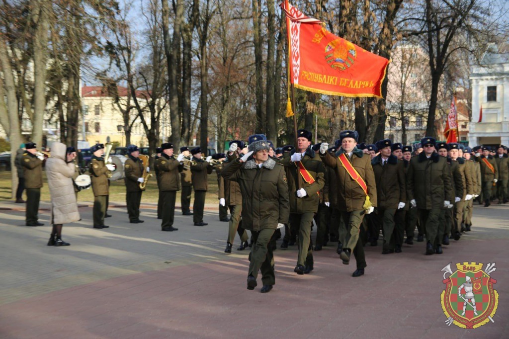Торжественное мероприятие, посвященное Дню защитников Отечества и 105-летию Вооруженных Сил Республики Беларусь, прошло сегодня в Гродненском гарнизоне в городском парке имени Э. Жилибера, у братской могилы советских воинов-освободителей и партизан.