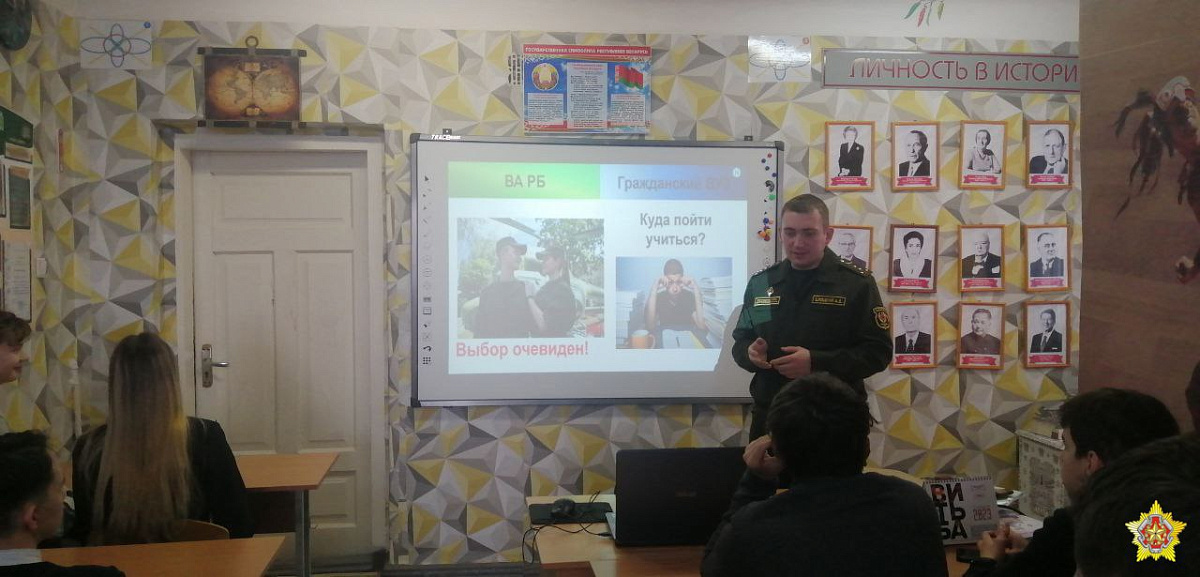 Гимназисты узнали об истории создания и развития Вооруженных Сил, а также требования и порядок поступления на различные факультеты Военной академии Республики Беларусь.