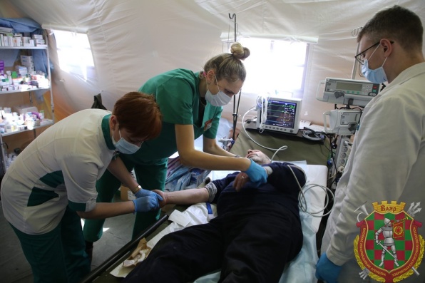Наши медики в погонах сработали молниеносно. Транспортировали пациента в палатку, поставили капельницу, а затем сделали инфузионную терапию и коррекцию метаболических нарушений. Состояние пациента в эти минуты удалось стабилизировать.