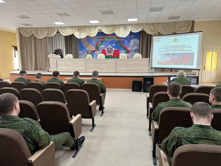 «80 лет трагедии в Хатыни. Результаты расследования геноцида белорусского народа в годы Великой Отечественной Войны» — тема Единого дня информирования, который прошел сегодня для военнослужащих и гражданского персонала 65-й автомобильной и 36-й дорожно-мостовой бригад.