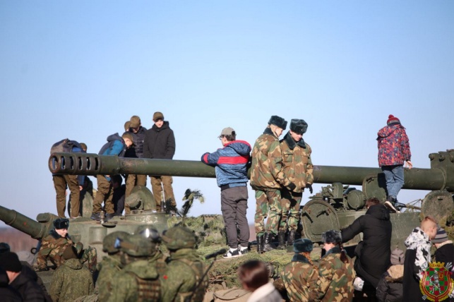 Вместе с тем сегодня на полигоне прошел день открытых дверей. Понаблюдать за боевой работой артиллеристов приехали несколько сотен школьников из Минской, Гомельской и Могилевской областей. Для гостей была организована выставка военной техники, состоящей на вооружении ракетных войск и артиллерии.