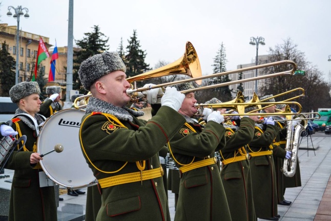 Военнослужащие оркестра и роты почетного караула Минской военной комендатуры приняли участие в торжественной церемонии возложения венка и цветов к монументу Победы в память о воинах Советской армии, партизанах и подпольщиках, погибших в годы Великой Отечественной войны.