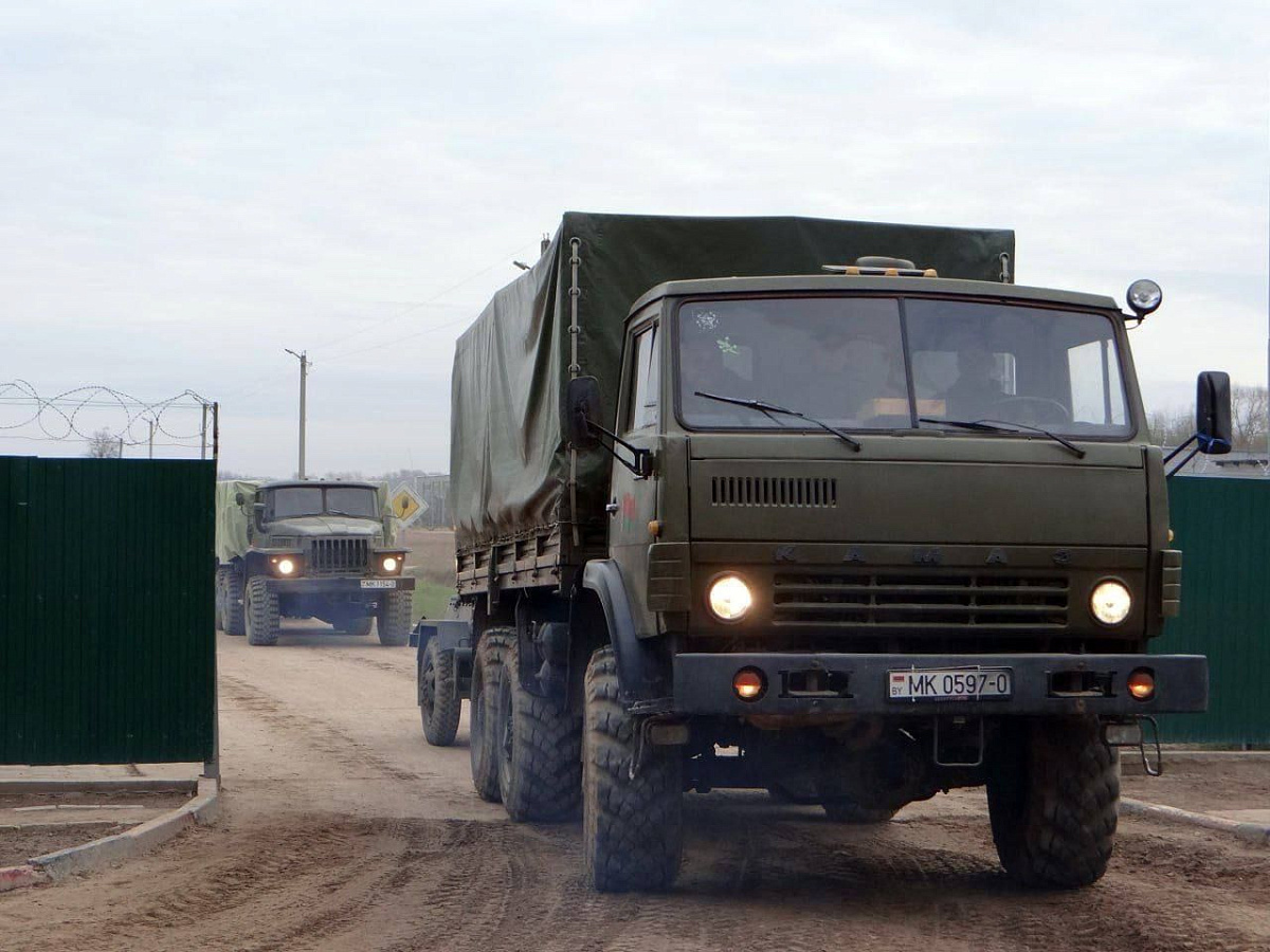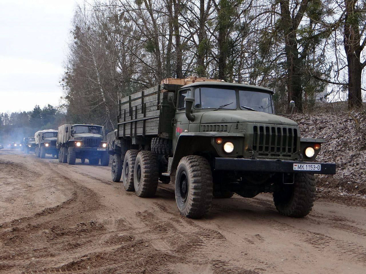В рамках проверки готовности Вооруженных Сил одно из подразделений, доукомплектованное военнообязанными, призванными из запаса, совершает марш в назначенный район на колесной технике.