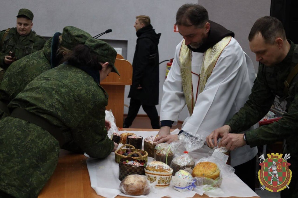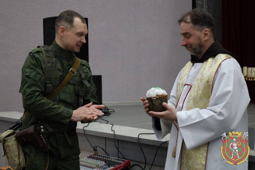 Помимо этого военнообязанных католического вероисповедания, призванных из запаса, со светлым праздником Пасхи поздравил настоятель прихода костела отец Юрий.