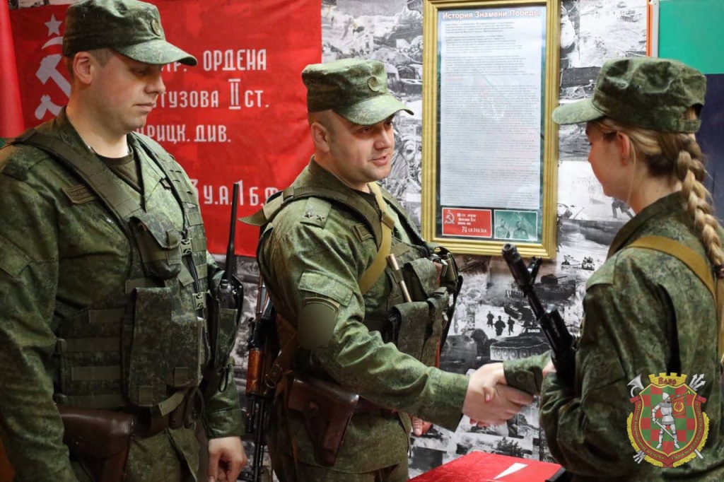 Сегодня состоялся торжественный ритуал принятия Военной присяги военнообязанными, призванными из запаса. Слова клятвы на верность Родине произнесли, в том числе, и представительницы прекрасного пола.