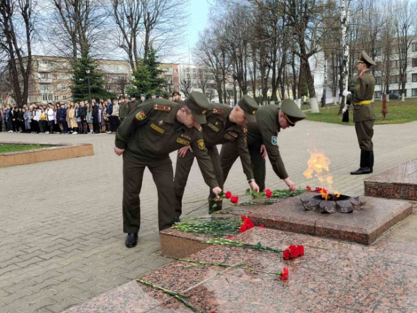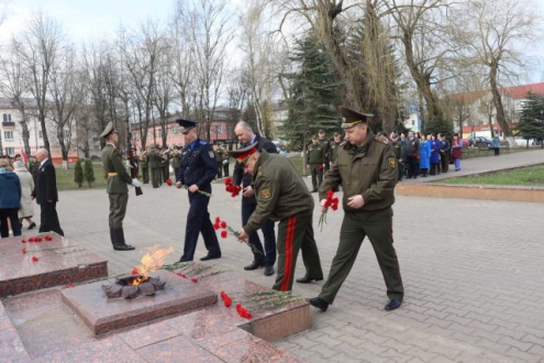 Военнослужащие гарнизона, представители местных органов власти, ветеранских и общественных организаций, учащиеся школ, студенты почтили память погибших и замученных в неволе минутой молчания и возложили цветы.