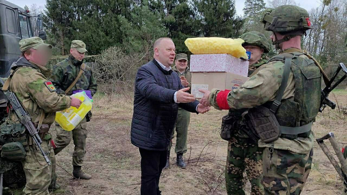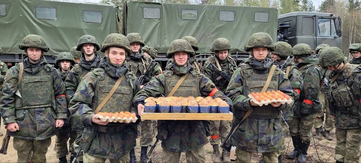 Гости подарили белорусским защитникам праздничное угощение - пасхальные куличи.