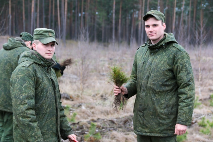 Воинский коллектив 557-й инженерной бригады Западного оперативного командования принял участие в республиканской добровольной акции «Неделя леса», приуроченной к Году мира и созидания. Личный состав высадил саженцы сосен на участке леса, который несколько лет назад сильно пострадал от пожара. Военные инженеры восстановили около гектара лесных насаждений.