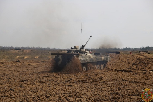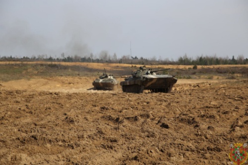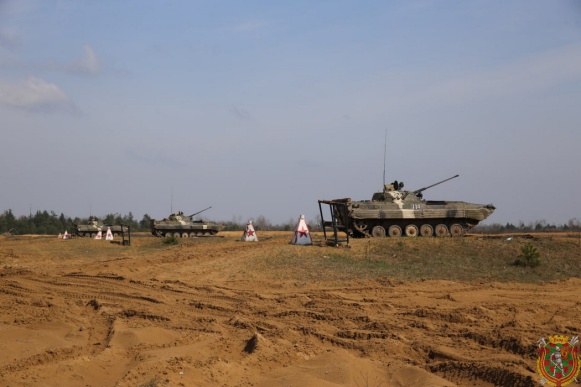 Личный состав одного из подразделений, привлекаемых к проверке боевой готовности Вооруженных Сил, на войсковом стрельбище полигона выполняет 2-е упражнение контрольных стрельб из вооружения БМП-2.