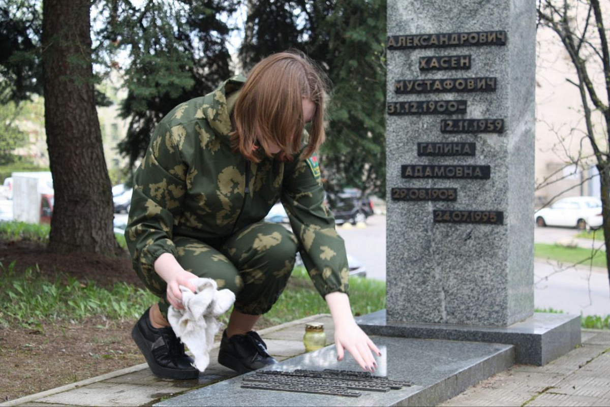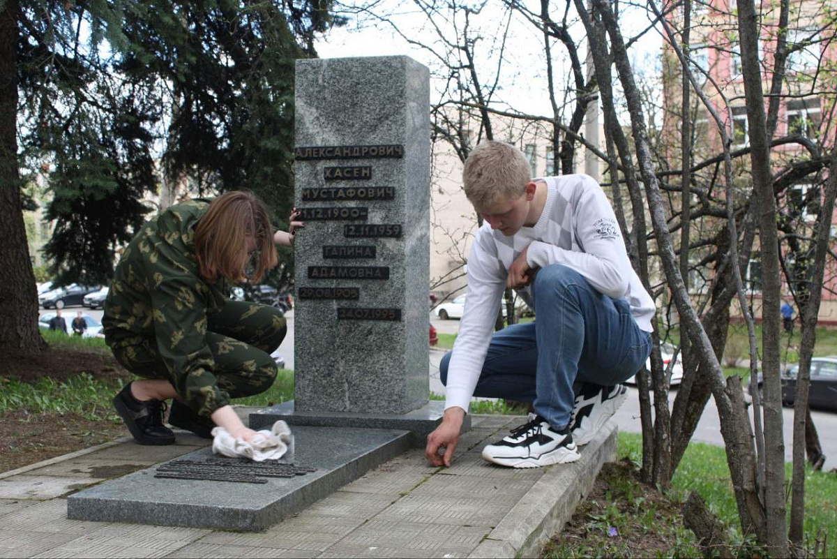 Военнослужащие 86-й бригады связи вместе с воспитанниками военно-патриотического клуба «Доблесть» в рамках поведения республиканского субботника навели порядок на территории памятника участнику Минского подполья, активного участника выпуска подпольной газеты «Звязда» в оккупированном г. Минске в годы Великой Отечественной войны Хасену Александровичу.