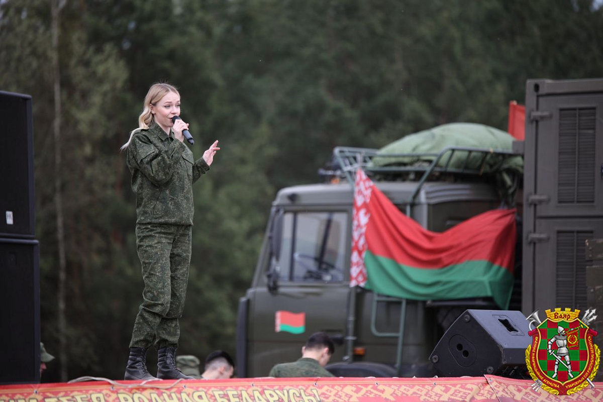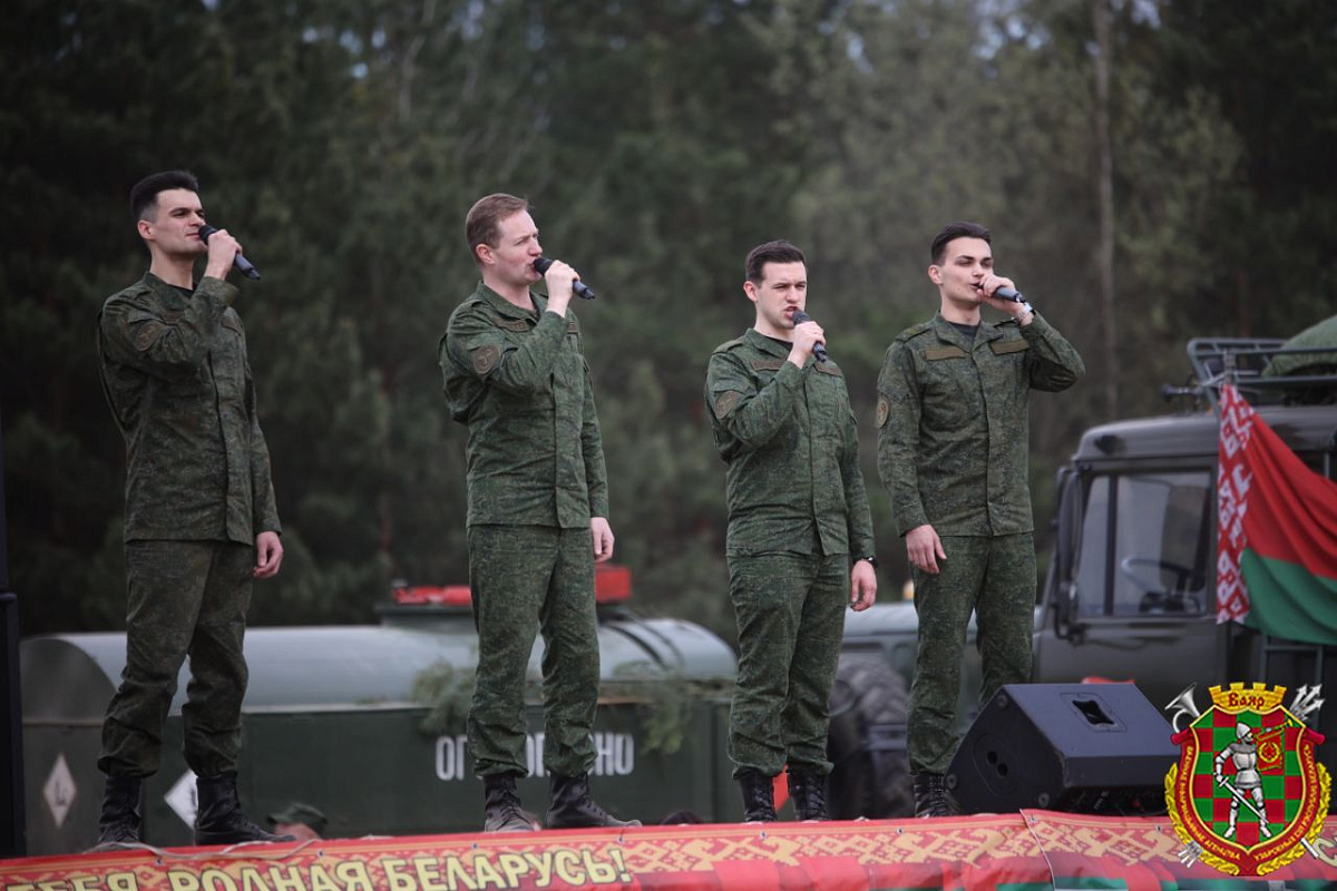 На одном из полигонов, где продолжается комплексная проверка боевой готовности Вооруженных Сил, с годовщиной со дня образования прославленного соединения военнослужащих поздравили артисты Заслуженного коллектива Республики Беларусь «Академический ансамбль песни и танца Вооруженных Сил Республики Беларусь».