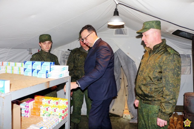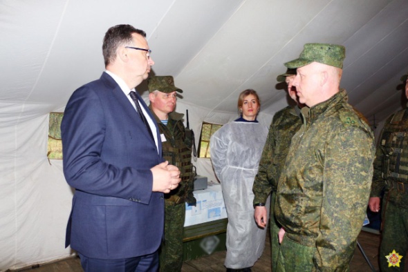 Министр здравоохранения Республики Беларусь Дмитрий Пиневич посетил отдельный медицинский отряд одного из соединений, задействованный в проверке боевой готовности Вооруженных Сил.