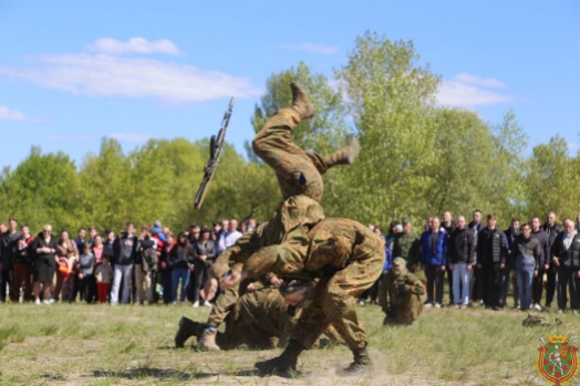 Для будущих военнослужащих и гостей мероприятия выступили курсанты роты почетного караула военного факультета в Белорусском государственном университете транспорта и бойцы сил специальных операций Вооруженных Сил.