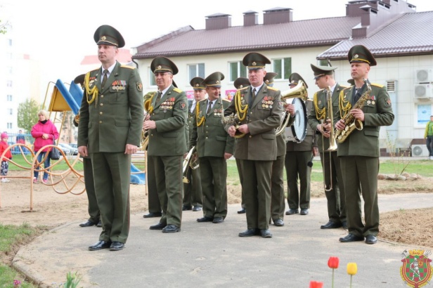 Военный оркестр 60-го отдельного полка связи исполнил для ветерана песни Победы.