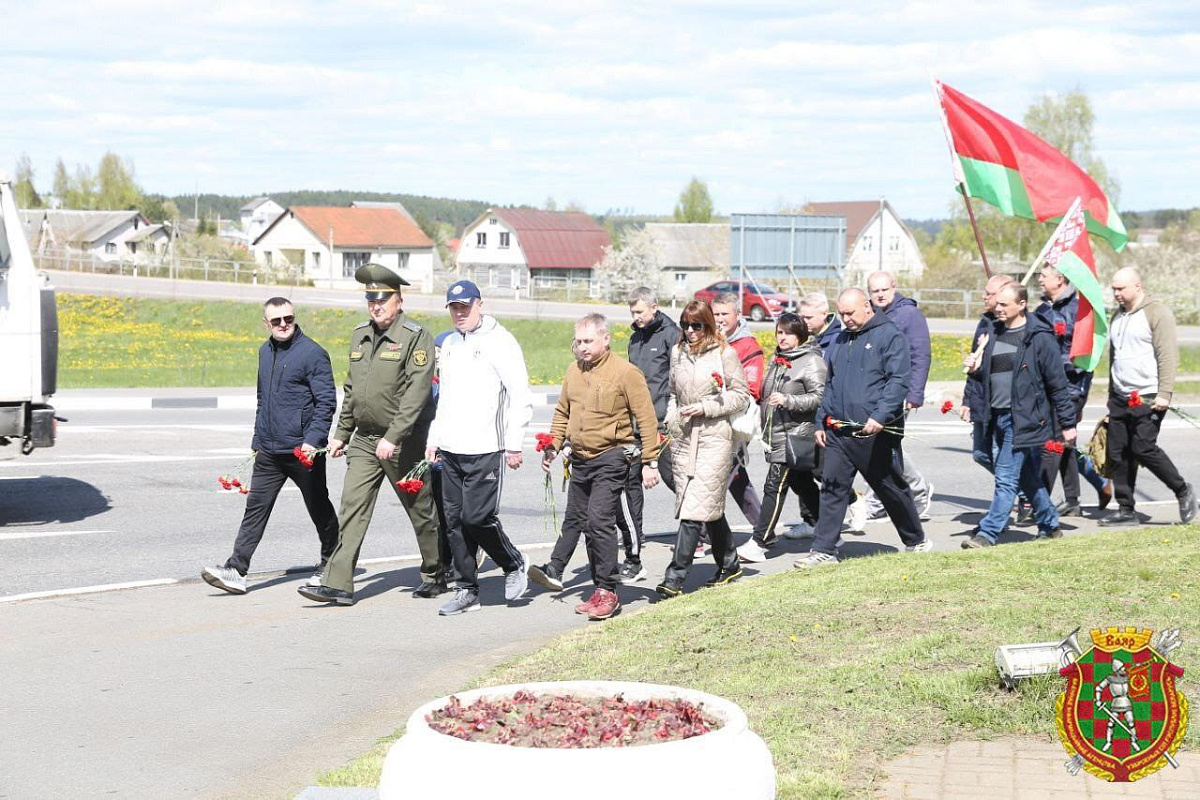 Стартовав от деревни Валерьяново, что на окраине столицы, военнослужащие завершили велопробег возложением цветов к мемориалу на Братской могиле советским воинам у Острошицкого Городка.