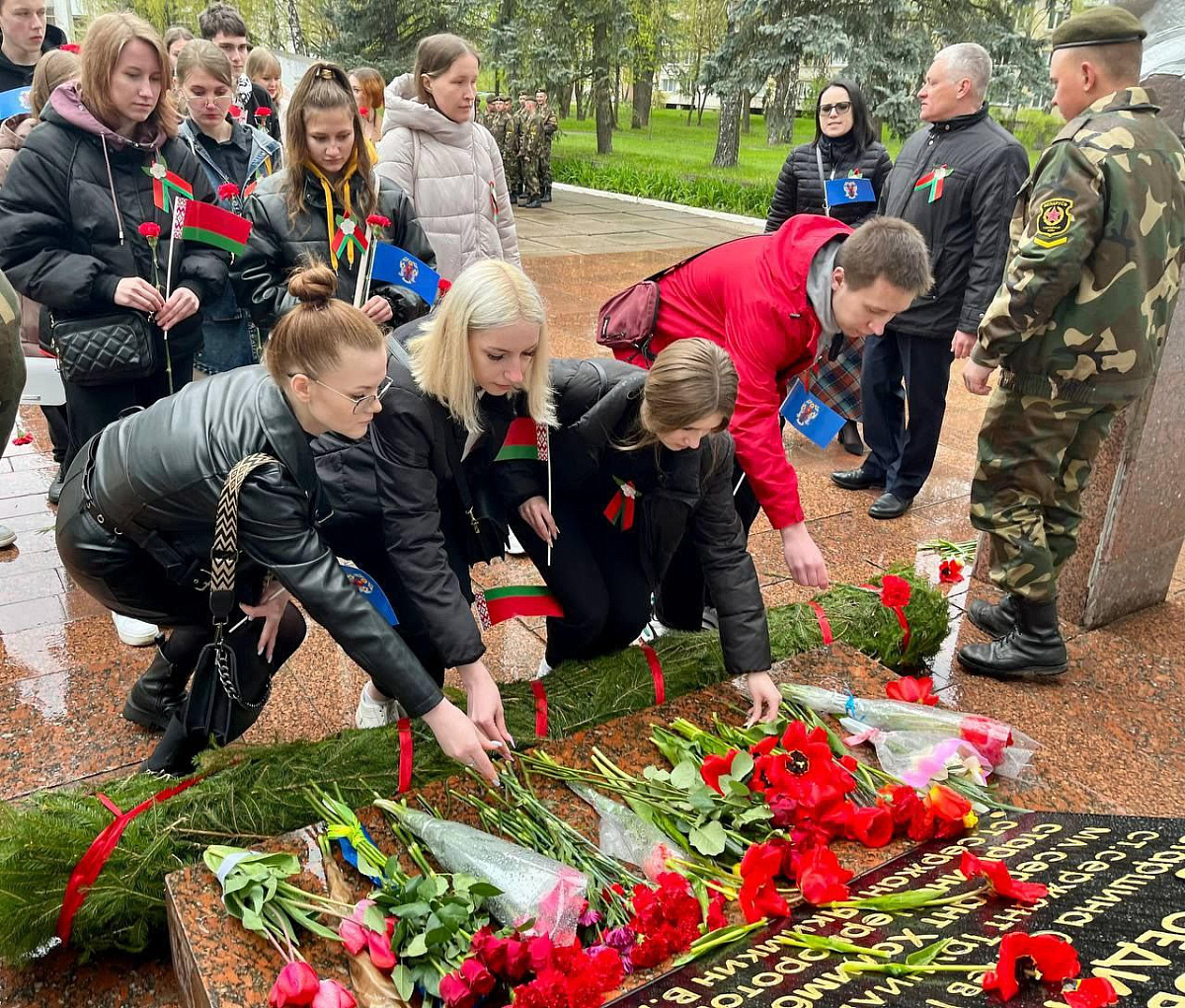 Воины-гвардейцы 339-го гвардейского отдельного механизированного батальона 120-й гвардейской отдельной механизированной бригады совместно с должностными лицами администрации Первомайского района г. Минска и учащимися учреждений образования возложили цветы к монументу «Аллея героев 120-й дивизии».