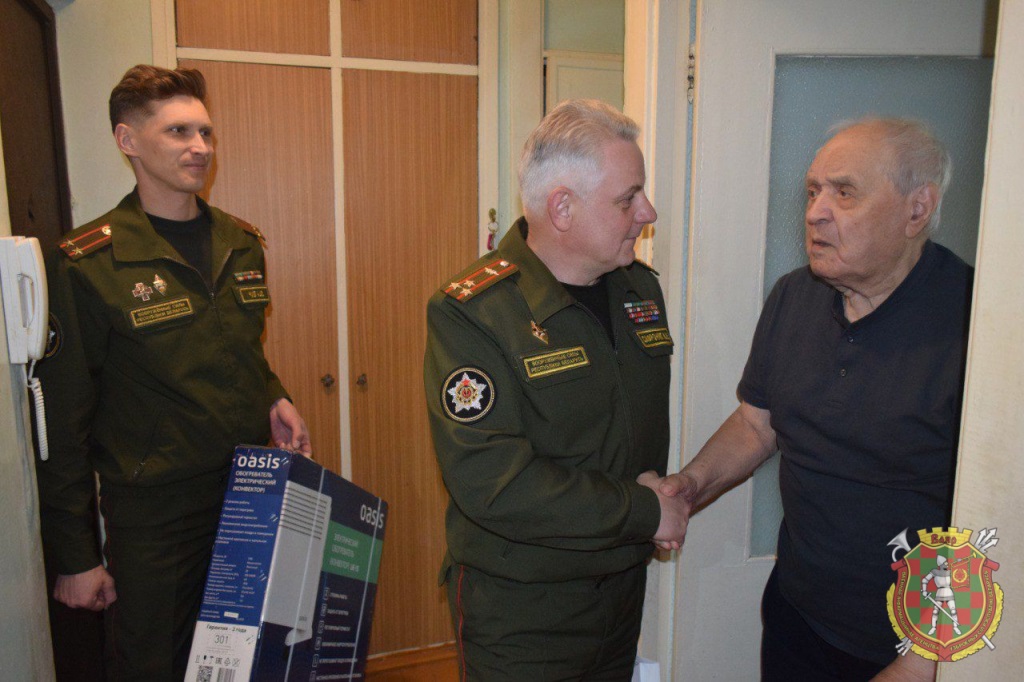 Начальник восьмого управления Генерального штаба Вооруженных Сил полковник Игорь Сафроняк поблагодарил полковника в отставке Куприяна Мироновича за мужество, героизм и поразительную силу духа, благодаря которым был внесен его личный, неоценимый вклад в Победу над нацизмом, вручил подарок и передал поздравления начальника Генерального штаба Вооруженных Сил — первого заместителя Министра обороны Республики Беларусь генерал-майора Виктора Гулевича