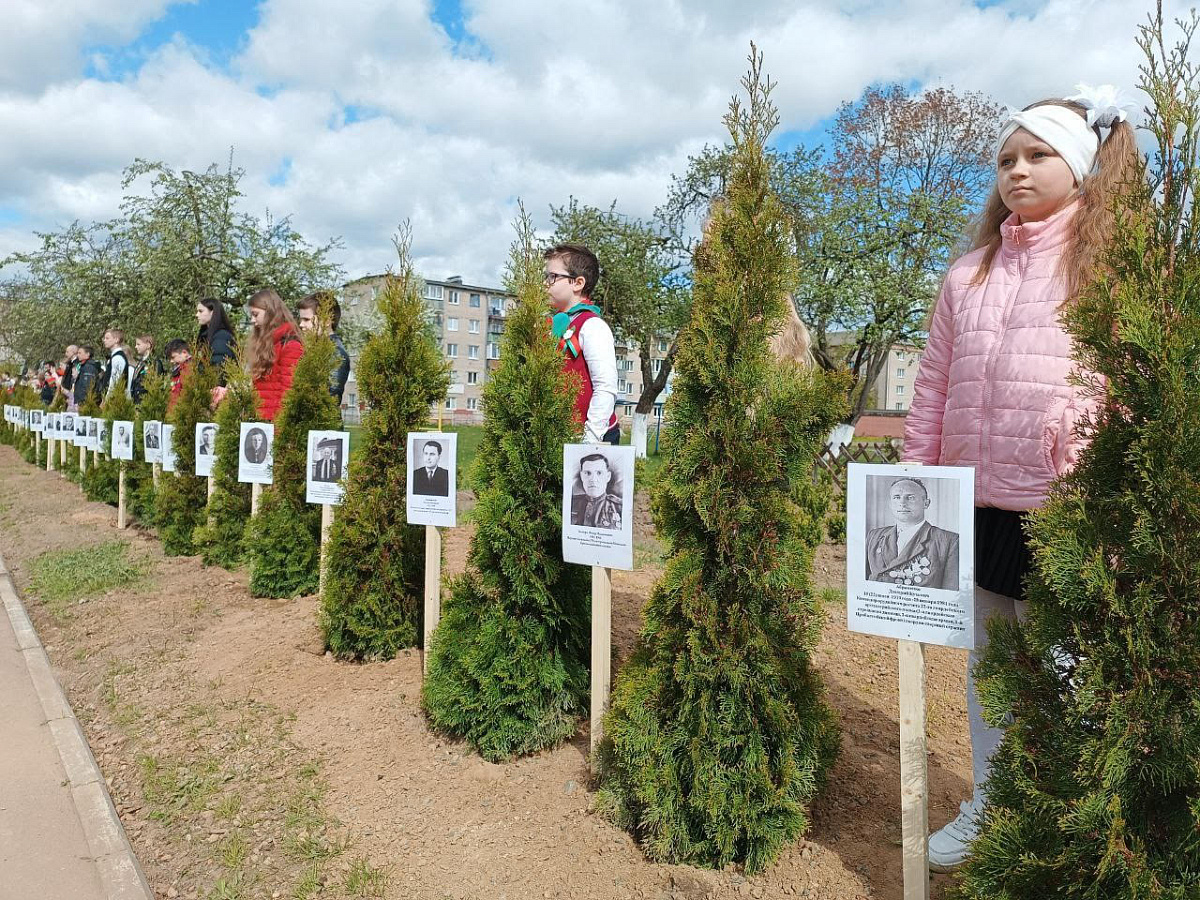 В преддверии Дня Победы в учреждении образования «Средняя школа № 4» г.Жодино военнослужащие 65-й автомобильной бригады совместно с представителями местных органов власти приняли участие в открытии аллеи Славы. Данная аллея стала красивым завершением проекта «Родные лица Победы».