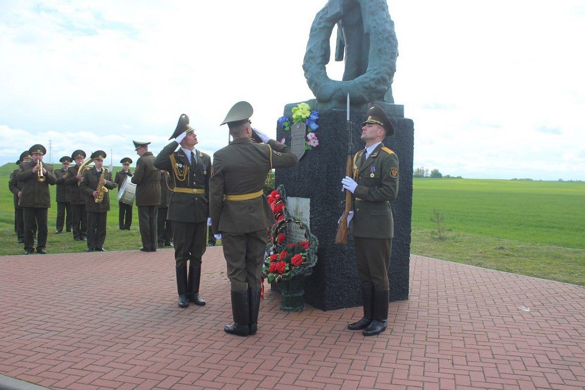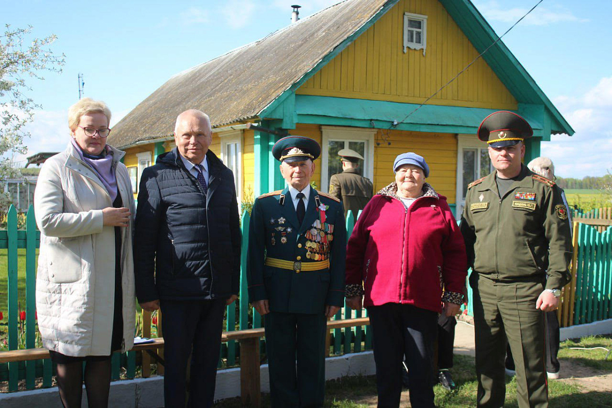 Военнослужащие возложили цветы к памятнику Советским воинам, а так же поздравили ветерана Великой Отечественной войны. Командир воинской части поблагодарил его за мирное небо над головой и вручил памятный подарок.