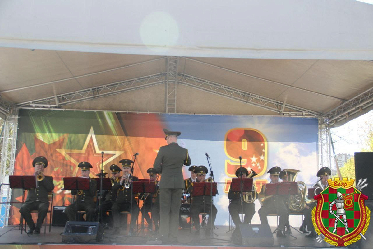 В праздник Великой Победы на территории парка имени Михаила Павлова для жителей столицы и гостей города сыграл личный состав оркестра 120-й отдельной гвардейской механизированной бригады.