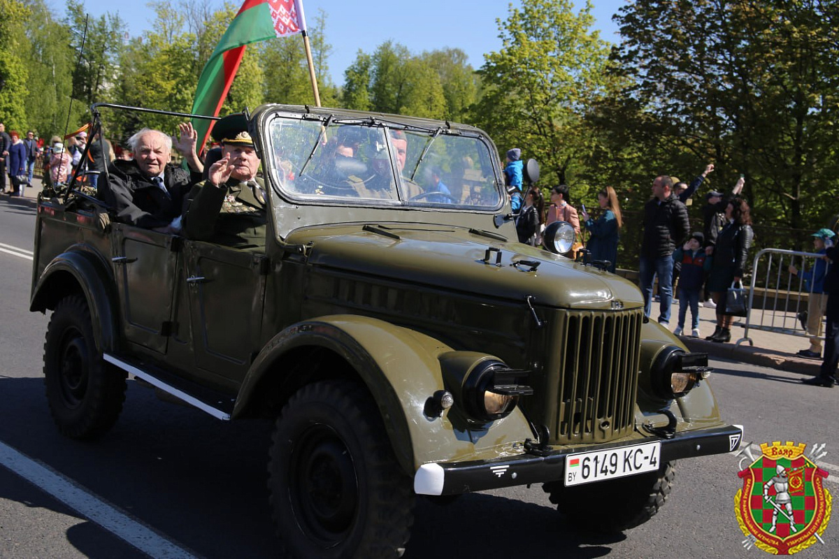Открыл праздничную программу мирный автопарад стилизованных автомобилей с инсталляциями на тему истории Великой Победы. В его составе на винтажных машинах проехали и участники Великой Отечественной войны. Затем, по традиции, состоялась церемония возложения цветов и венков к памятнику советским воинам и партизанам в городском парке имени Жилибера. Далее по главным улицам старинного Гродно продефилировали участники шествия поколений.