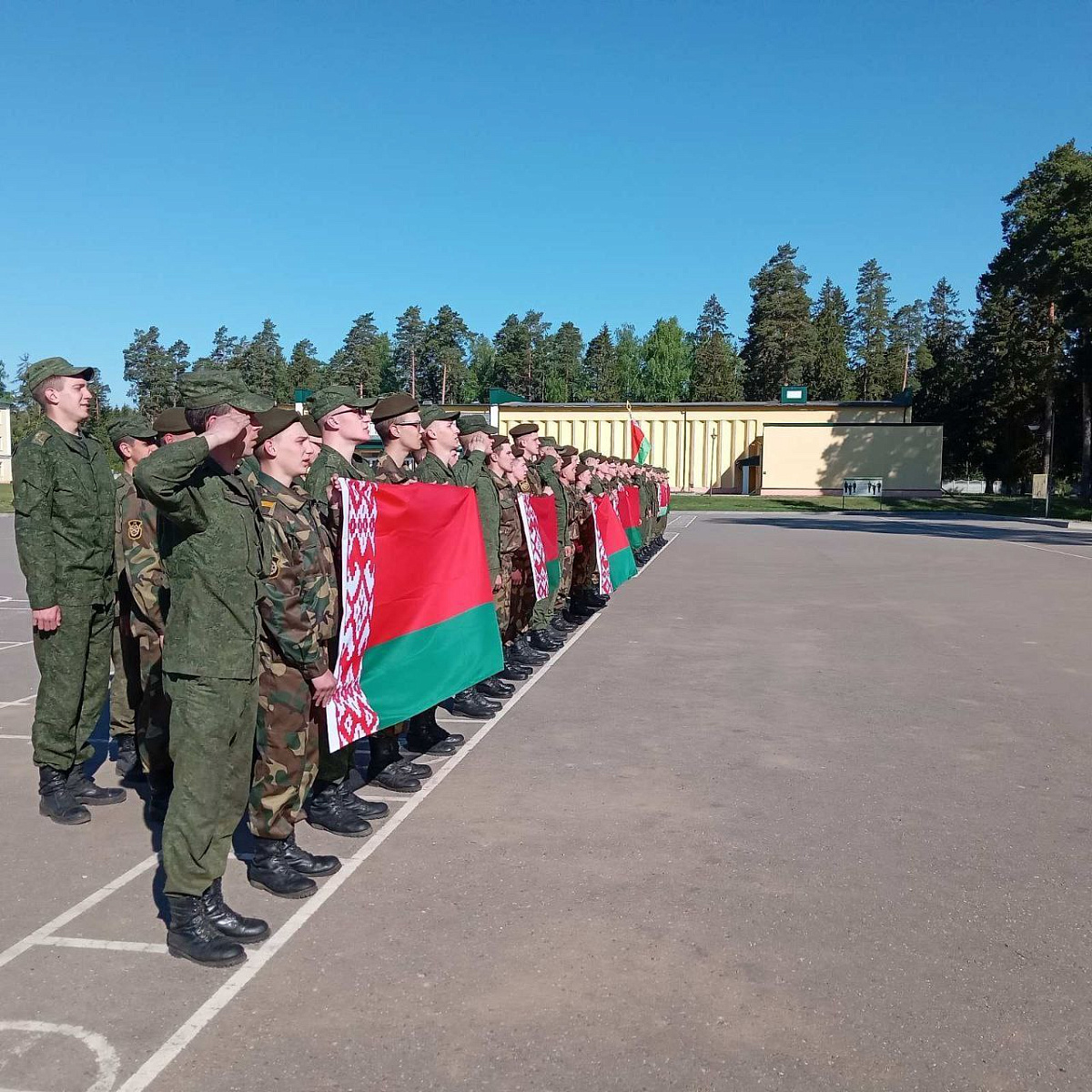 Военнослужащие 231-й артиллерийской бригады и 191-й группы артиллерии 19-й отдельной гвардейской механизированной бригады в торжественной обстановке отметили День Государственного флага, Государственного герба и Государственного гимна Республики Беларусь.