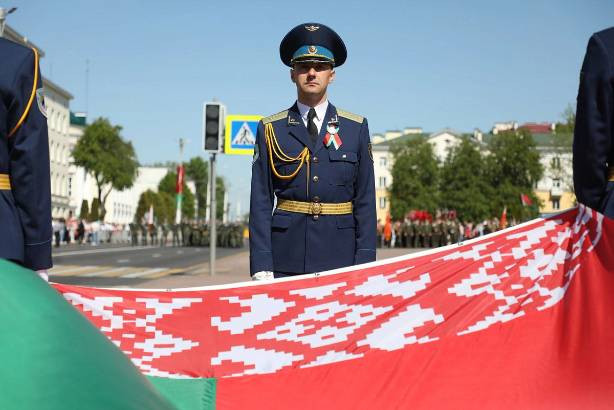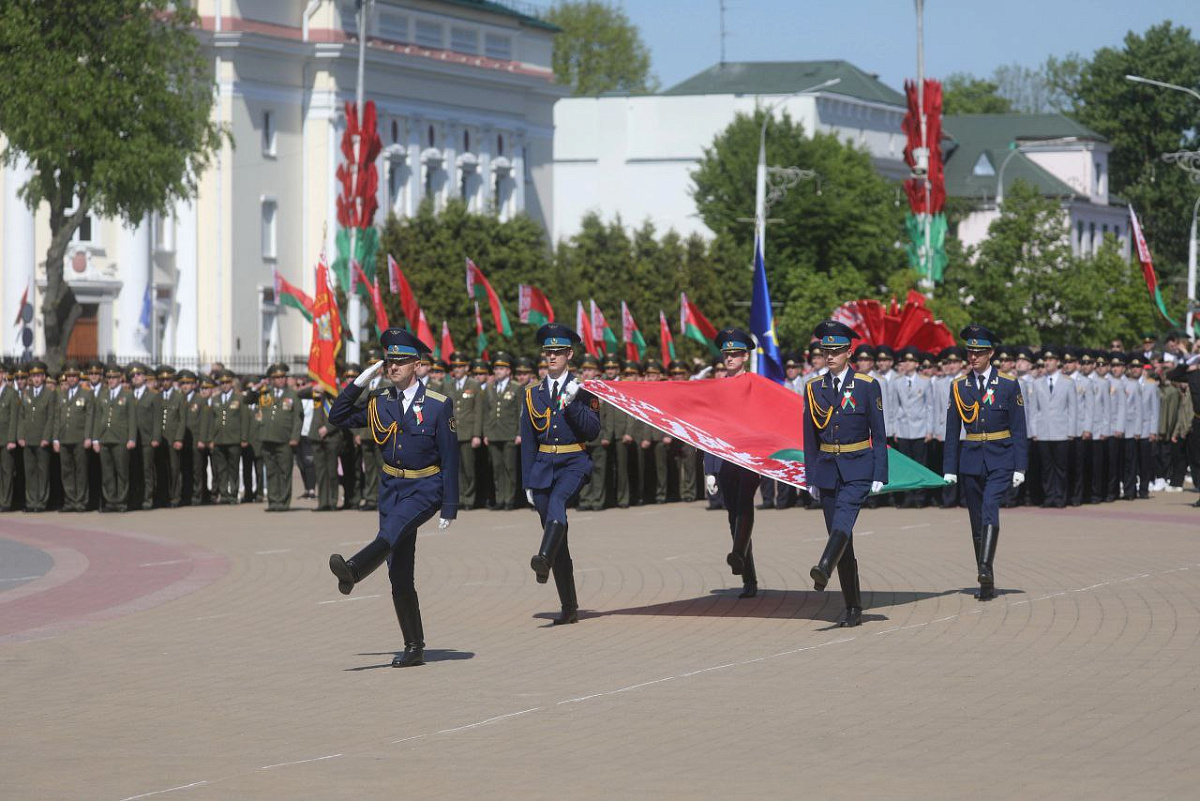 В честь Дня Государственного флага, Государственного герба и Государственного гимна Республики Беларусь военнослужащие 38-й Брестской отдельной гвардейской десантно-штурмовой бригады приняли участие в республиканской акции ОО «БРСМ» «Ганаруся роднымi сiмваламi».