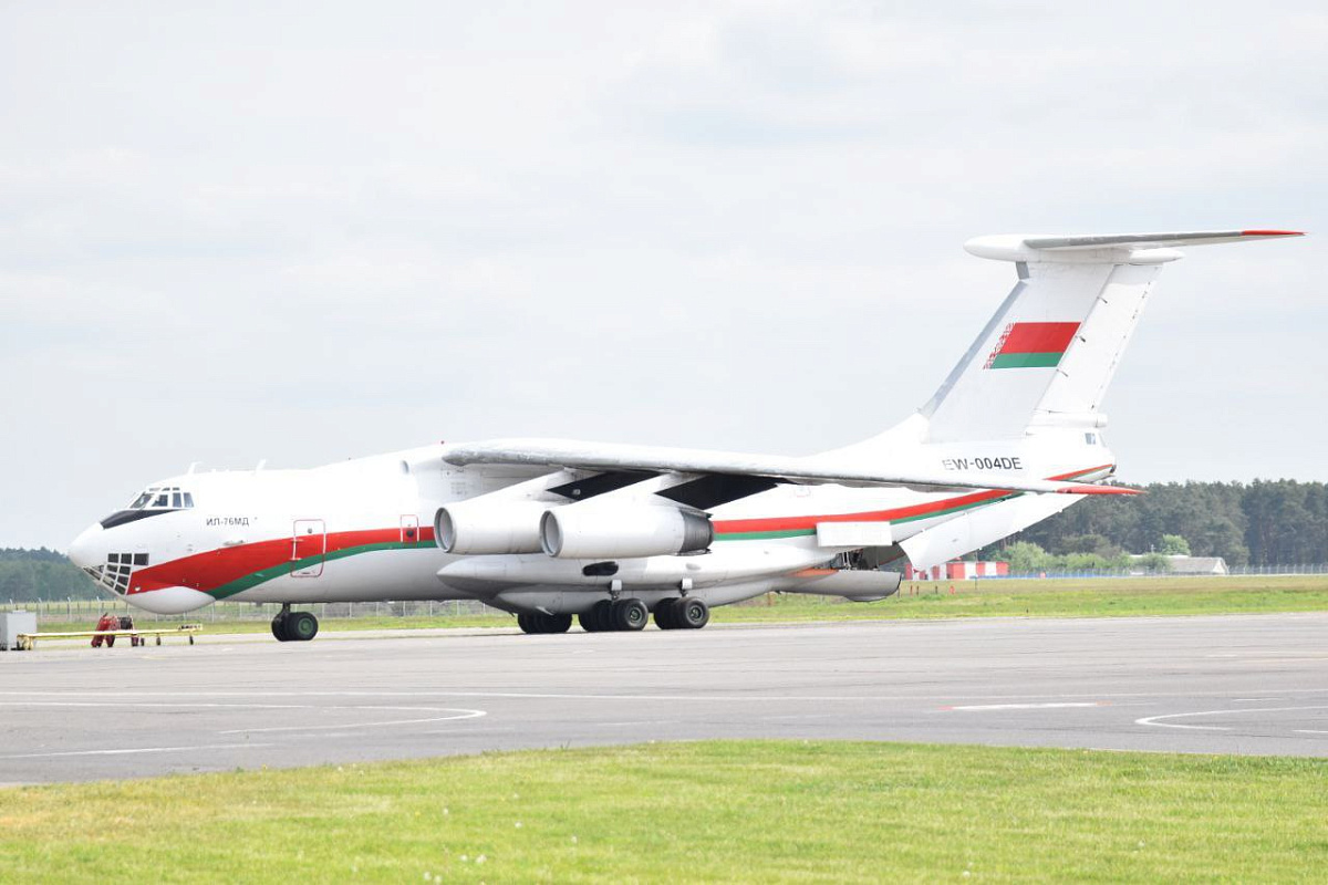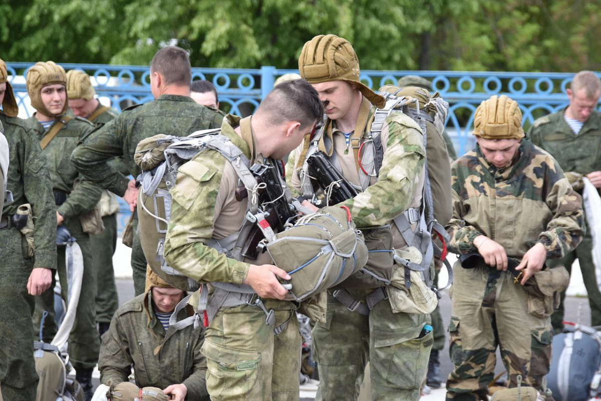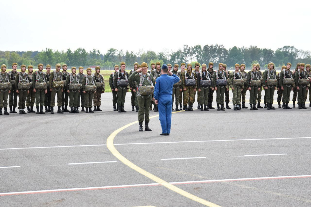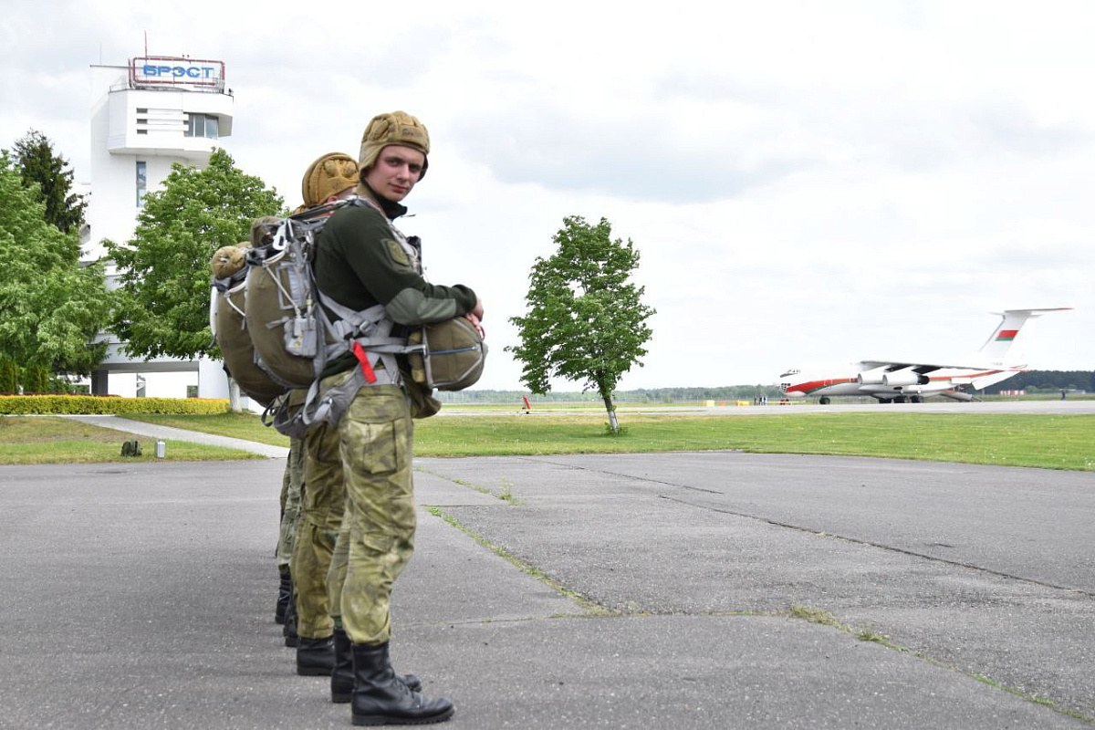 Военнослужащие 38-й Брестской отдельной гвардейской десантно-штурмовой бригады готовятся к прыжку с парашютом с борта самолета ИЛ-76МД.