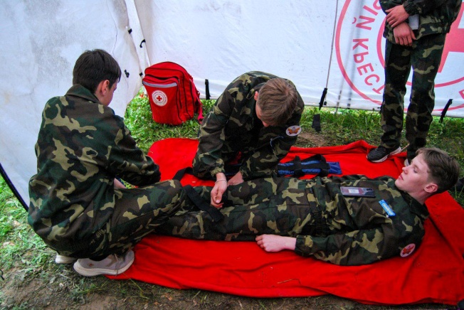 Помимо состязаний, которые проводились вчера, сегодня добавились дополнительные этапы, такие как стрельба из пневматических винтовок, оказание первой медицинской помощи и транспортировка пострадавшего, а также оценка творческих способностей команд, участники которых подготовили боевые листки.