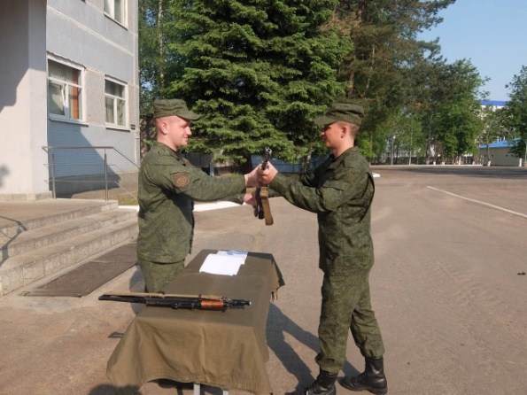 В этот день военнослужащие роты нового пополнения были распределены по штатным подразделениям. После этого личному составу, ставшему в строй, в торжественной обстановке было вручено оружие.