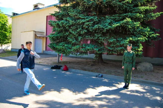 Учащимся были продемонстрированы образцы современного вооружения и обмундирования военнослужащих, а также предоставлена возможность выполнить разборку и сборку оружия, метание гранат и освоить основные элементы строевой подготовки с военнослужащим роты почетного караула Минской военной комендатуры.
