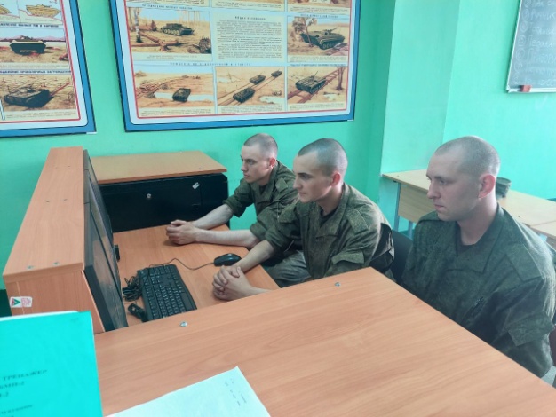 С курсантами 307-й гвардейской школы подготовки специалистов мотострелковых и десантных подразделений 72-го гвардейского Объединенного учебного центра подготовки прапорщиков и младших специалистов проходят занятие по вождению боевых машин на учебных тренажерах.