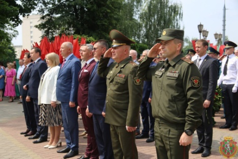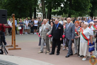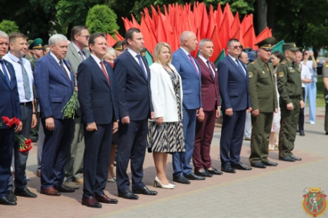 В День памяти жертв Великой Отечественной войны и геноцида белорусского народа в Гродно прошел митинг-реквием по случаю 82-ой годовщины начала Великой Отечественной войны. У мемориала погибшим советским воинам-освободителям, партизанам и подпольщикам в городском парке имени Жилибера собрались помощник Президента Республики Беларусь – инспектор по Гродненской области Юрий Караев, представители местных органов власти и общественности, командования ЗОК и военного комиссариата Гродненской области, личный состав воинских частей гарнизона, курсанты военного факультета в ГрГУ, ветераны, молодежь.