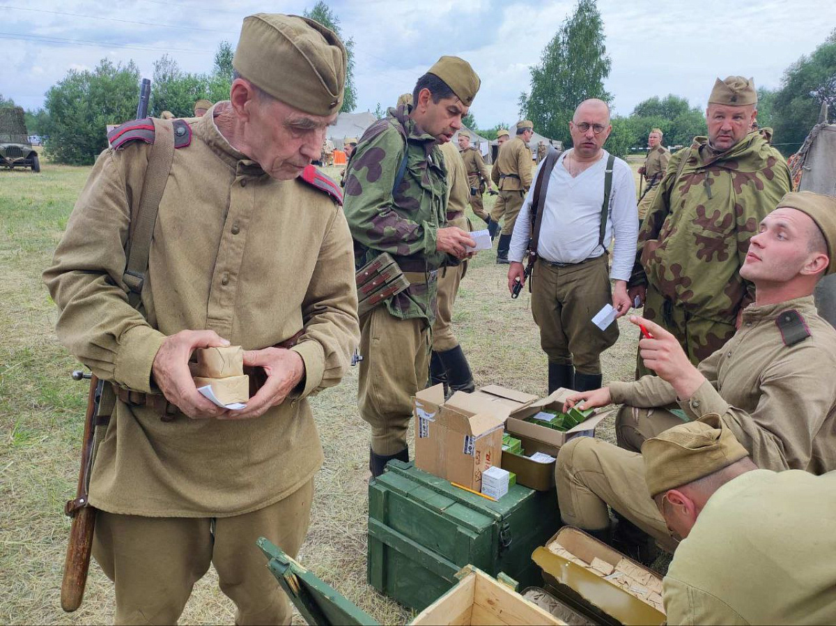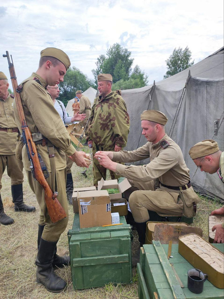 Реконструкторы-красноармейцы провели митинг в честь воинов, форсировавших Березину в районе Щатково в 1944 году. Воссоздавая фронтовой быт передовой образца Великой Отечественной войны, бойцы противоброствующих лагерей - Красной Армии и вермахта - совершали друг против друга «вылазки», советские солдаты и командиры провели тактическую игру с прохождением по маршруту на технике.